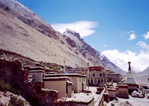 絨布寺依山而建,腳下的絨布河是由珠峰北坡的三大冰川一東絨布冰川、中絨布冰川、西絨布冰川部分泉水匯集而成的冰水河流。